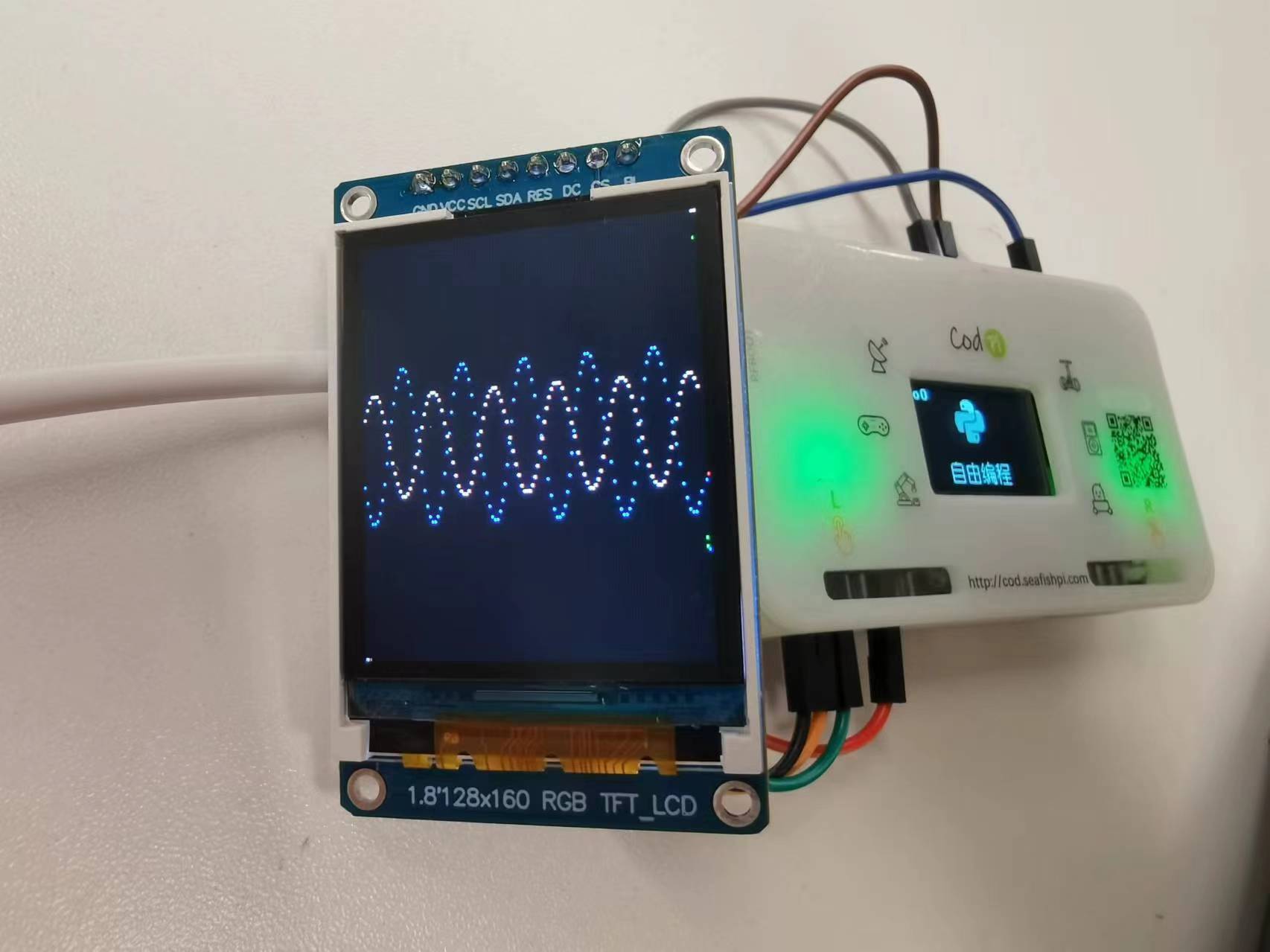 - 像画笔一样,以不同绘制速度,在液晶屏上逐点画出幅度、频率、初相、颜色不同的正弦波。