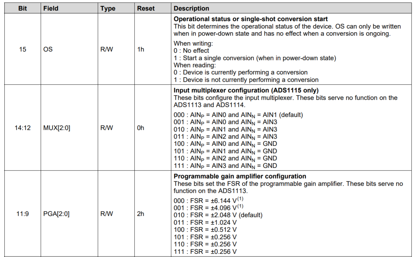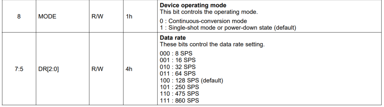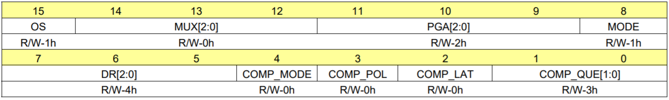 数据寄存器0x00以及配置寄存器0x01 - 配置寄存器如下表: